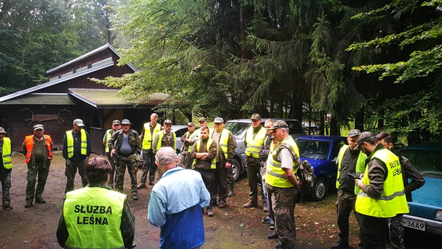 W poszukiwaniu padłych dzików brało udział 32 osoby, pracownicy naszego nadleśnictwa oraz członkowie Koła Łowieckiego nr 1 w Otwocku. Podczas porannej odprawy Zastępca Powiatowego Lekarza Weterynarii - lek. wet. Jacek Martyniuk przeprowadził szkolenie z zakresu postępowania w przypadku odnalezienia padłego dzika.